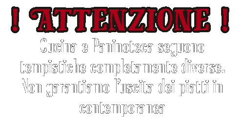 Indipendentemente dalla consultazione di questa pagina, vi chiediamo cortesemente di avvertire il personale di sala delle vostre allergie e intolleranze